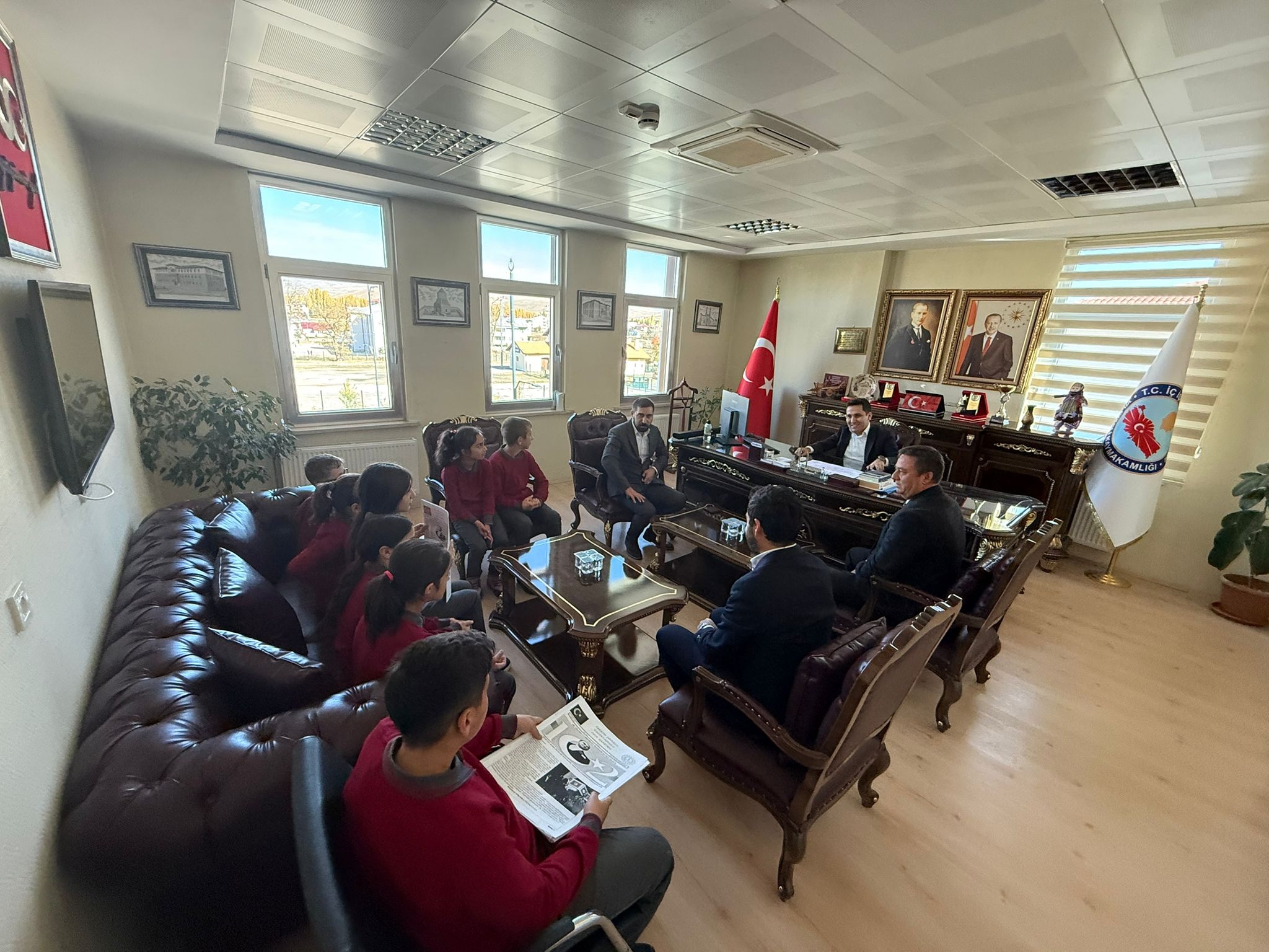 Müdürlüğümüze bağlı Yakacık Çavuşlu İlkokulu ve Ortaokulu Müdürü Sn. Sedat ÇALIŞKAN, Müdür Yardımcısı Sn. Sinan ESKİCİ ve öğrencileriyle birlikte Kaymakamımız Sn. İsmail BİLDİRİCİ'ye ve İlçe Millî Eğitim Müdürümüz Sn. Erdal KARADAĞ'a ziyarette bulundular. Ziyaret sırasında öğrenciler tarafından hazırlanan 29 Ekim Cumhuriyet Bayramı gazetesi hediye edildi. Emeklerinden dolayı öğrencilerimize ve öğretmenlerimize teşekkür ediyoruz.