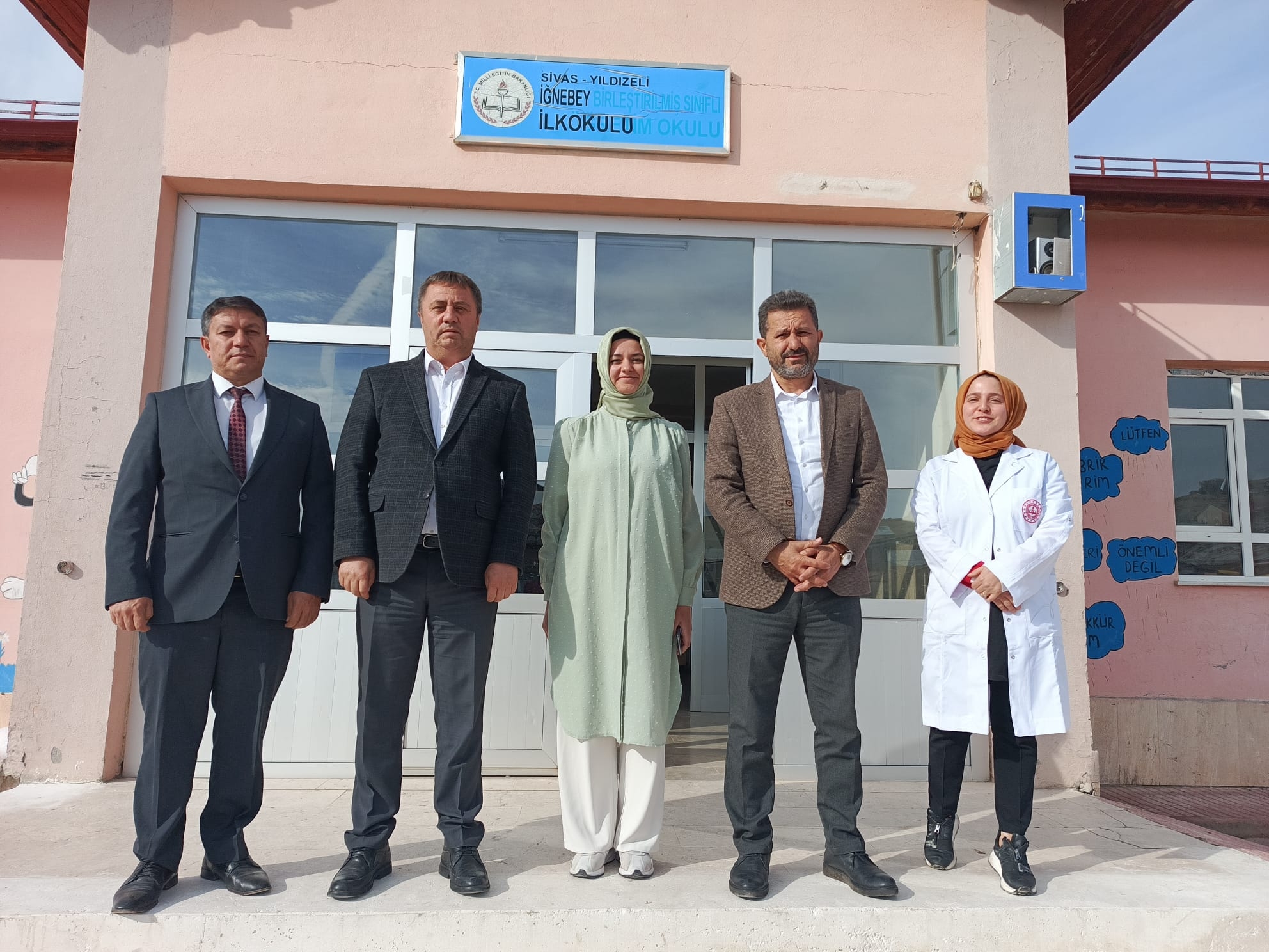 Yıldızeli İlçe Millî Eğitim Müdürü Sayın Erdal KARADAĞ ile İlçe Millî Eğitim Şube Müdürleri Sayın Fahrettin BÜLBÜL ve Sayın Saffet UZUN, Müdürlüğümüze bağlı Seren İlkokulu ve İğnebey İlkokulunu ziyaret etti. Ziyaretlerde okul yönetimi ve öğretmenlerle bir araya gelen İlçe Millî Eğitim Müdürü KARADAĞ, eğitim-öğretim faaliyetleri hakkında bilgi aldı. Okulların fiziki durumu, eğitim ortamları ve yürütülen projeler yerinde incelendi. Öğrencilerle de sohbet eden KARADAĞ, derslerinde başarılar dileyerek, eğitimin temelinde sevgi, emek ve özverinin yer aldığını ifade etti. Ziyaret, okul yöneticileri ve öğretmenlere çalışmalarında başarı dilekleriyle sona erdi.